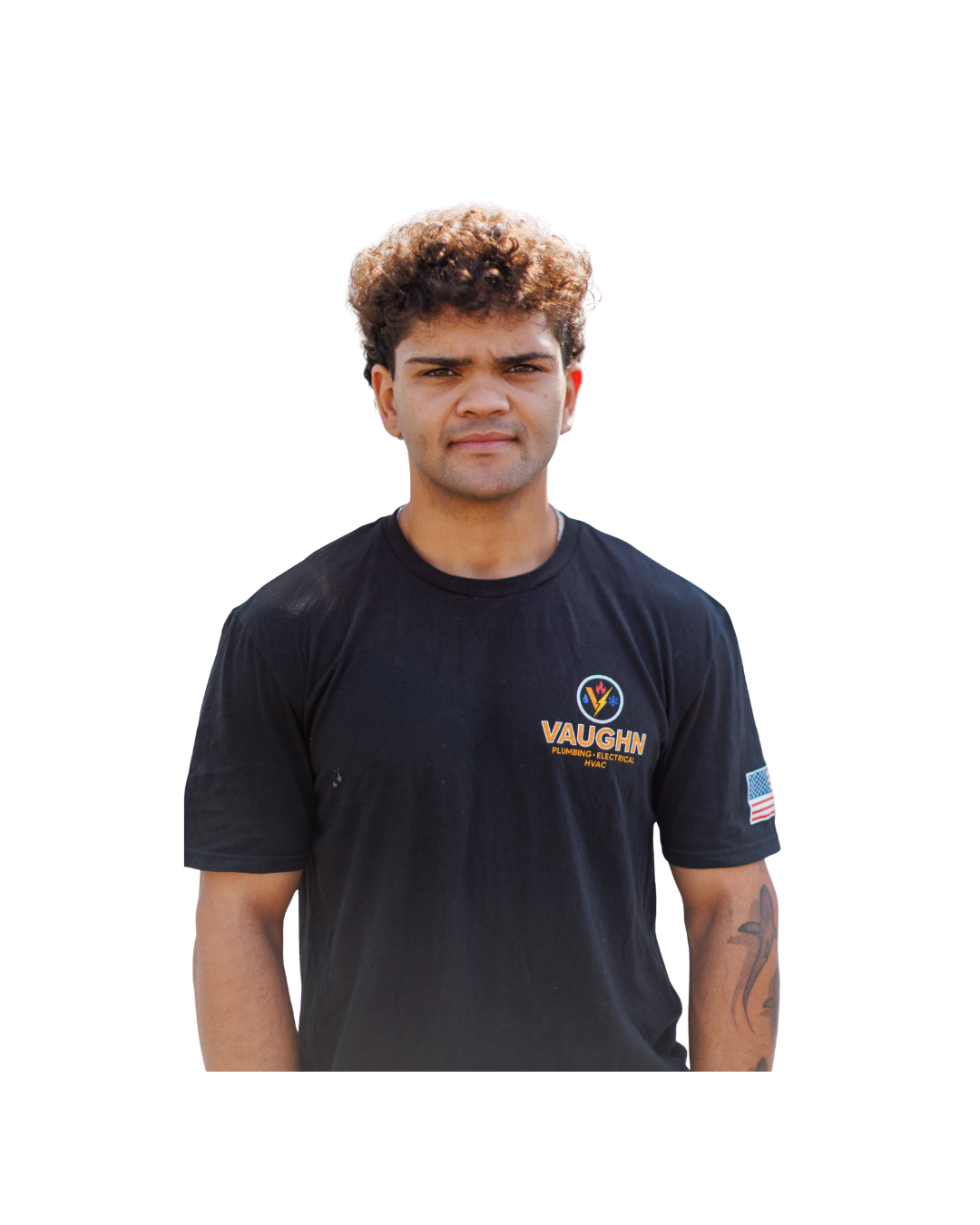 Meet Sam, he brings skill, humor, and optimism to every job he tackles. His favorite part about working at Vaughn Plumbing, & HVAC is the people — especially learning from Mike and being part of a team that feels like family.